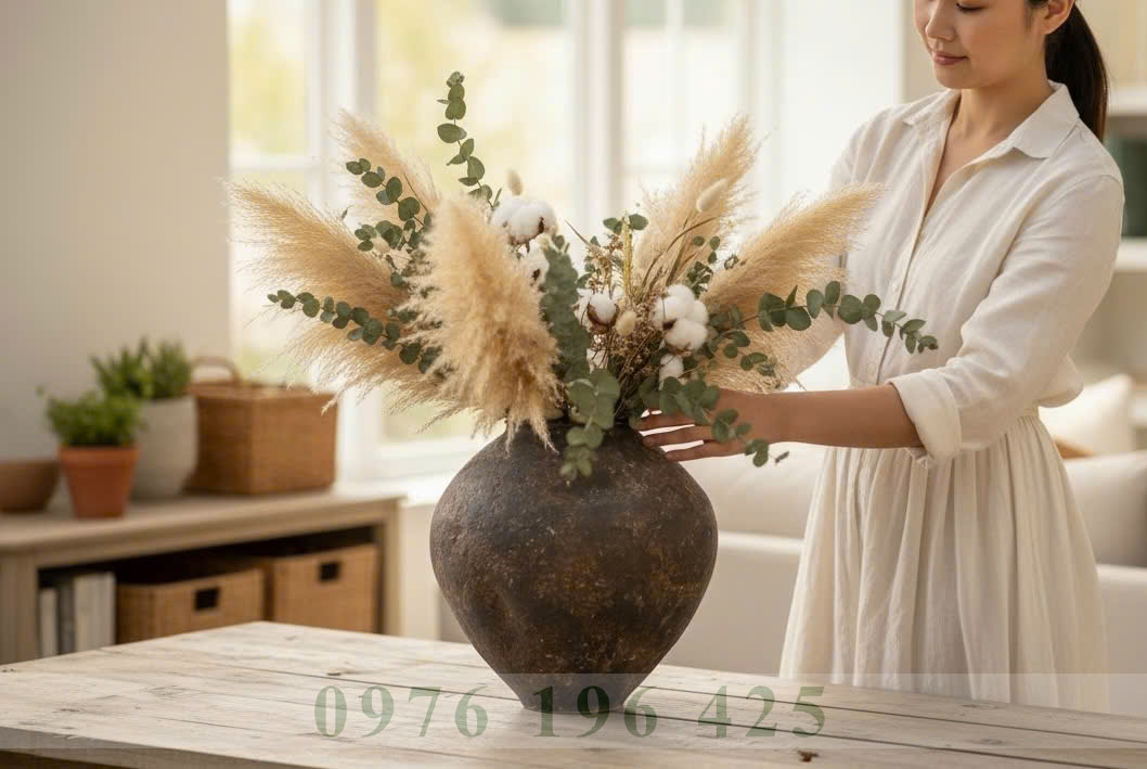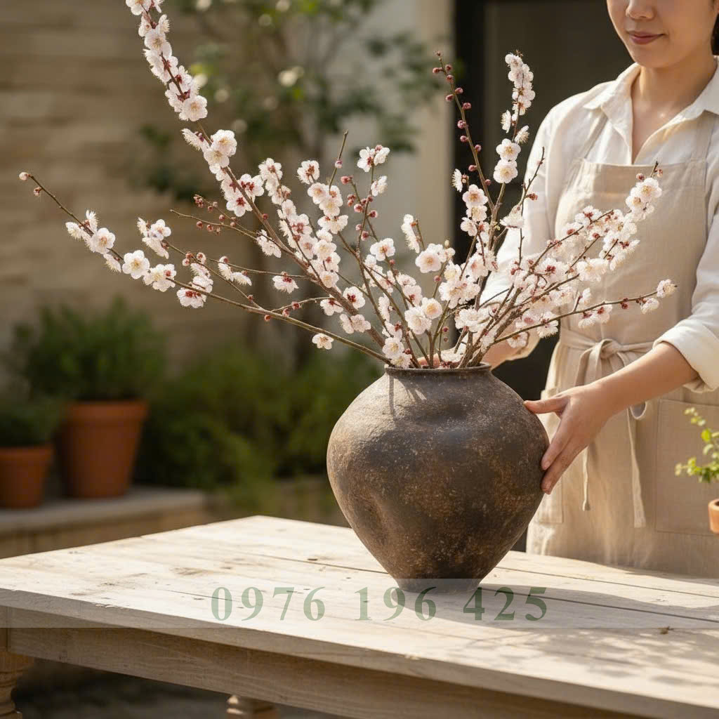 Bình gốm Bát Tràng dáng chum méo