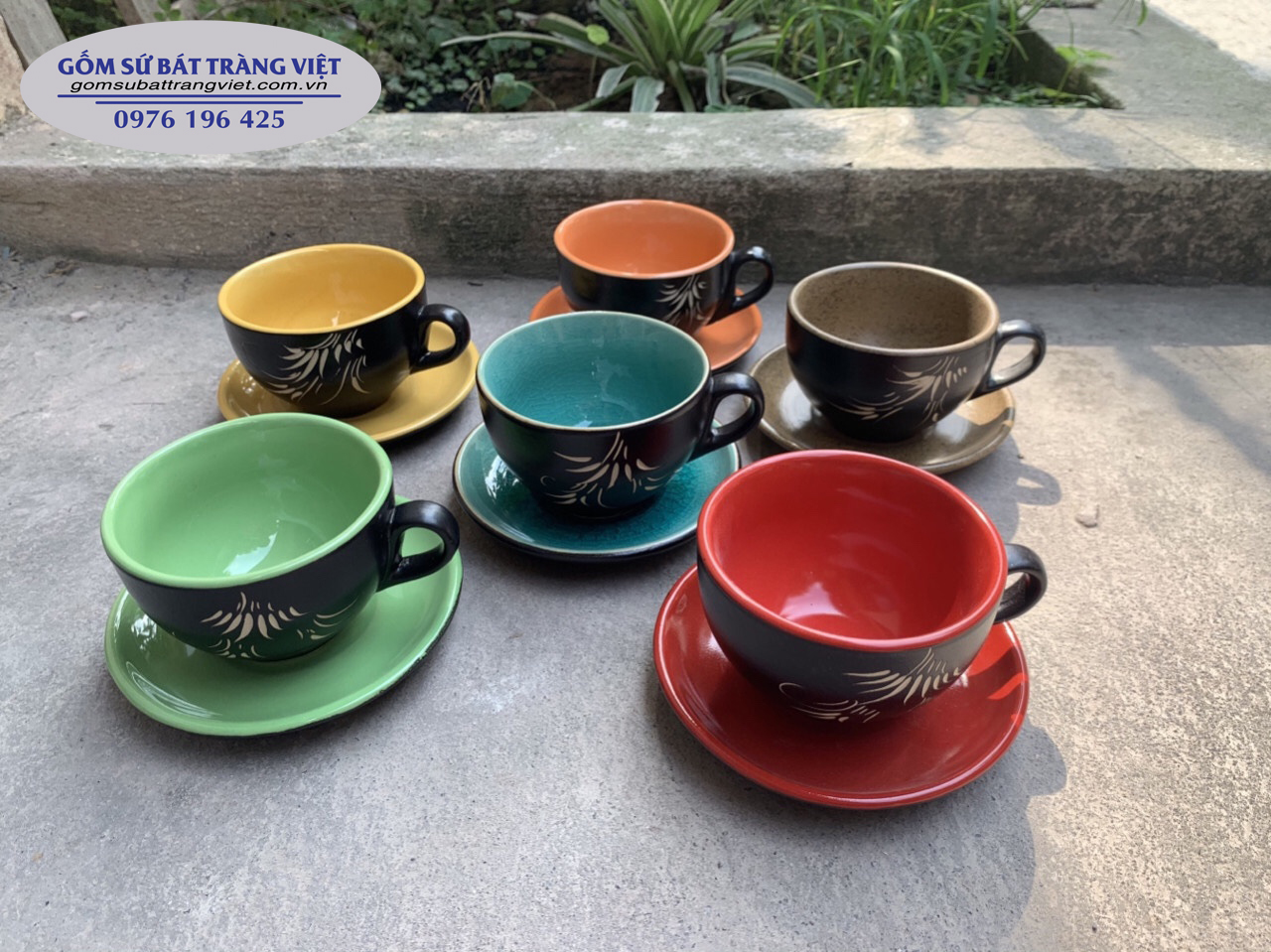 Đầu tiên phải kể đến dòng sản phẩm cốc sứ uống cà phê đặc trưng của gốm sứ Bát Tràng. Những sản phẩm này bên ngoài có màu đen, bên trong có tráng một lớp men bóng với nhiều màu sắc khác nhau: Nâu, xanh dương, xanh lá, vàng, cam, đỏ. Mỗi bộ sản phẩm gồm một chiếc cốc đi kèm với đĩa kê cùng màu.