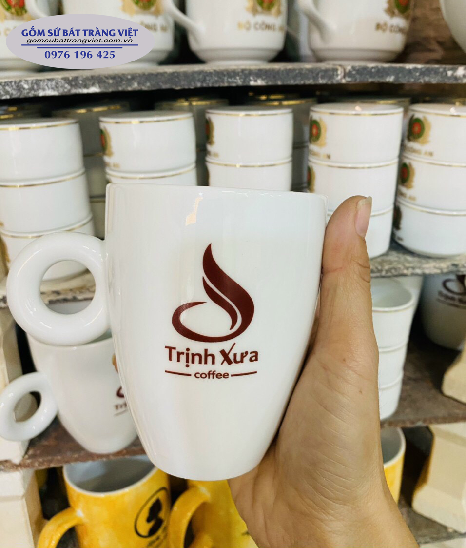 Những sản phẩm cốc sứ uống cà phê men trắng in logo là một lựa chọn khá phổ biến hiện nay. Với màu sứ trắng sáng, nước men bóng mịn cùng với sự nổi bật của logo chính là dấu ấn thương hiệu mà các doanh nghiệp đang nhắm tới nhằm mục đích quảng bá thương hiệu, tên tuổi của mình với khách hàng.