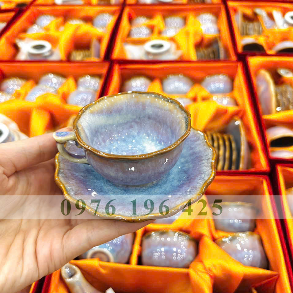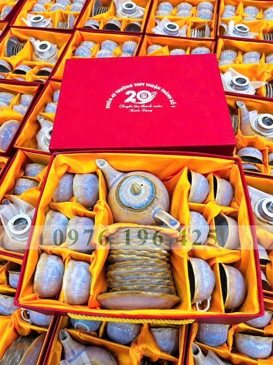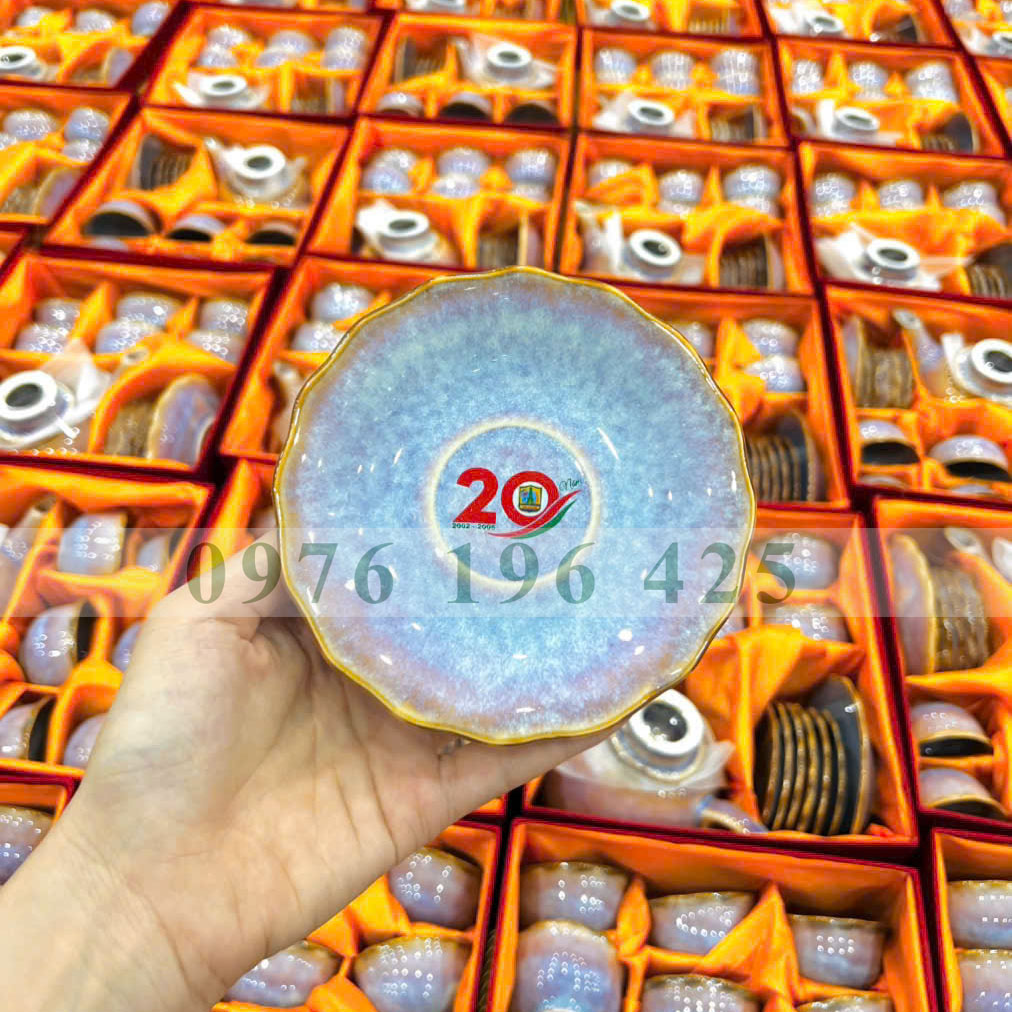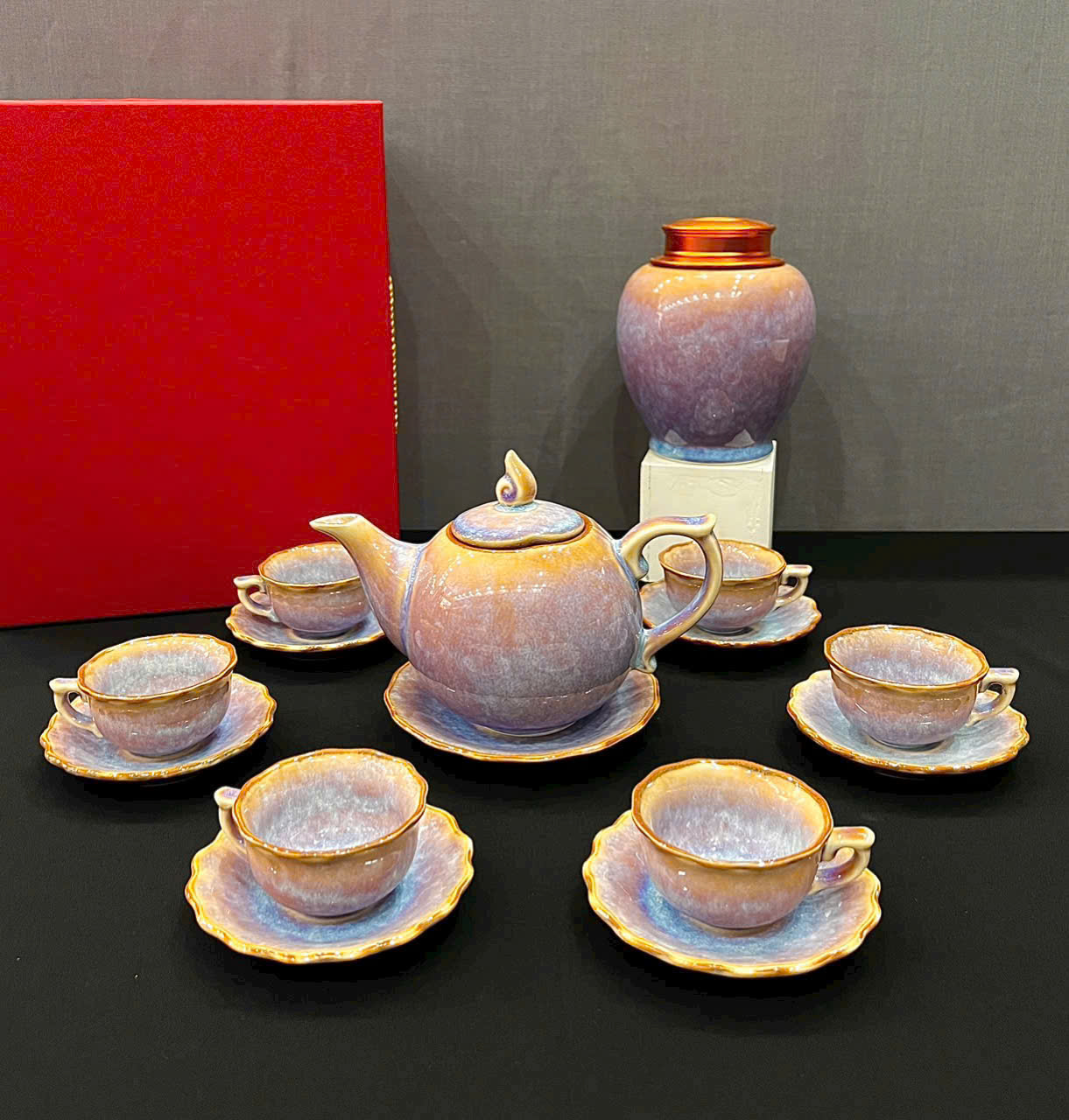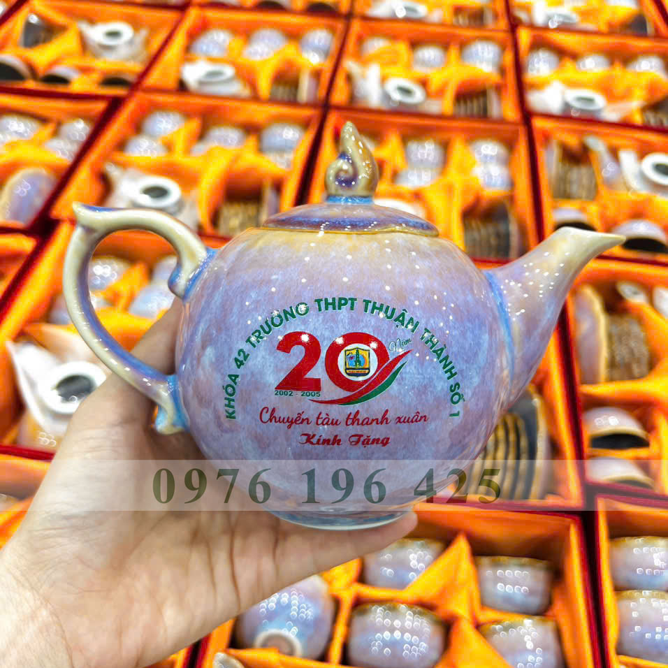 Bộ trà mẫu đơn men hỏa biến tím in logo