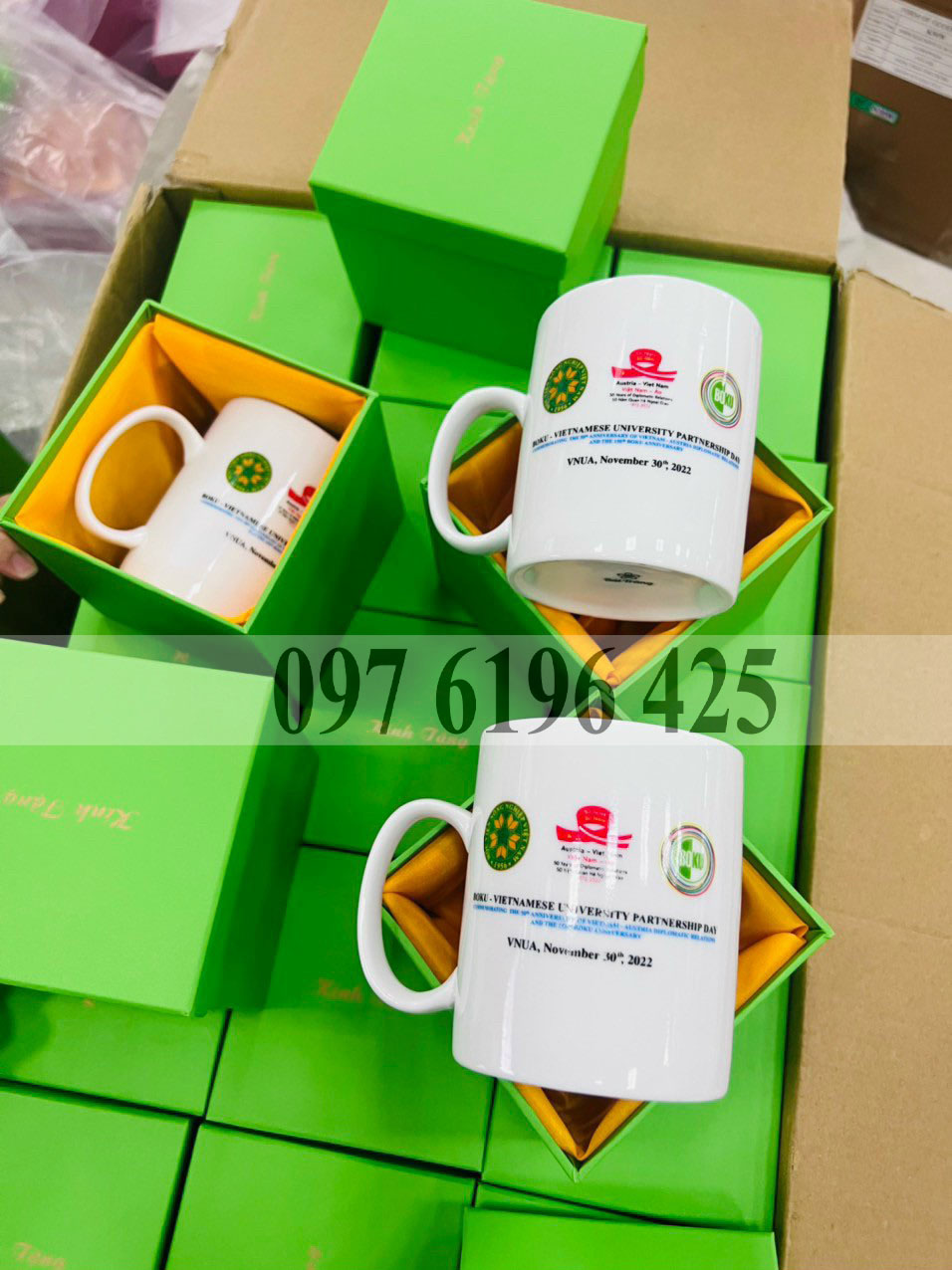 + Chúng tôi nhận in ấn logo theo yêu cầu không giới hạn số lượng, giá cả phải chăng và cam kết về chất lượng. Họa tiết logo in trên sứ đảm bảo sắc nét, bền màu vĩnh cửu, không nhòe hay bong tróc.