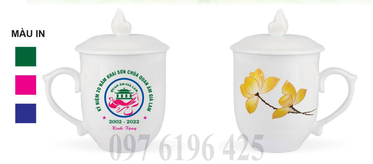 1.Cốc sứ, ly sứ bát tràng in logo :