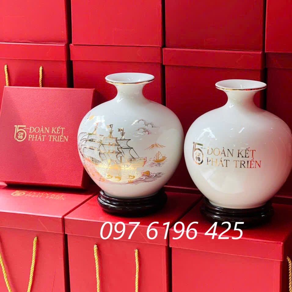 Để đáp ứng được tất cả các tiêu chí như đẹp, sang trọng, giá rẻ phù hợp với đơn hàng quà tặng có số lượng lớn, thời gian sản xuất nhanh thì mẫu bình hút tài lộc được làm sứ men mày vẽ vàng kim vẫn là lựa chọn hàng đầu của các khách hàng hiện nay.